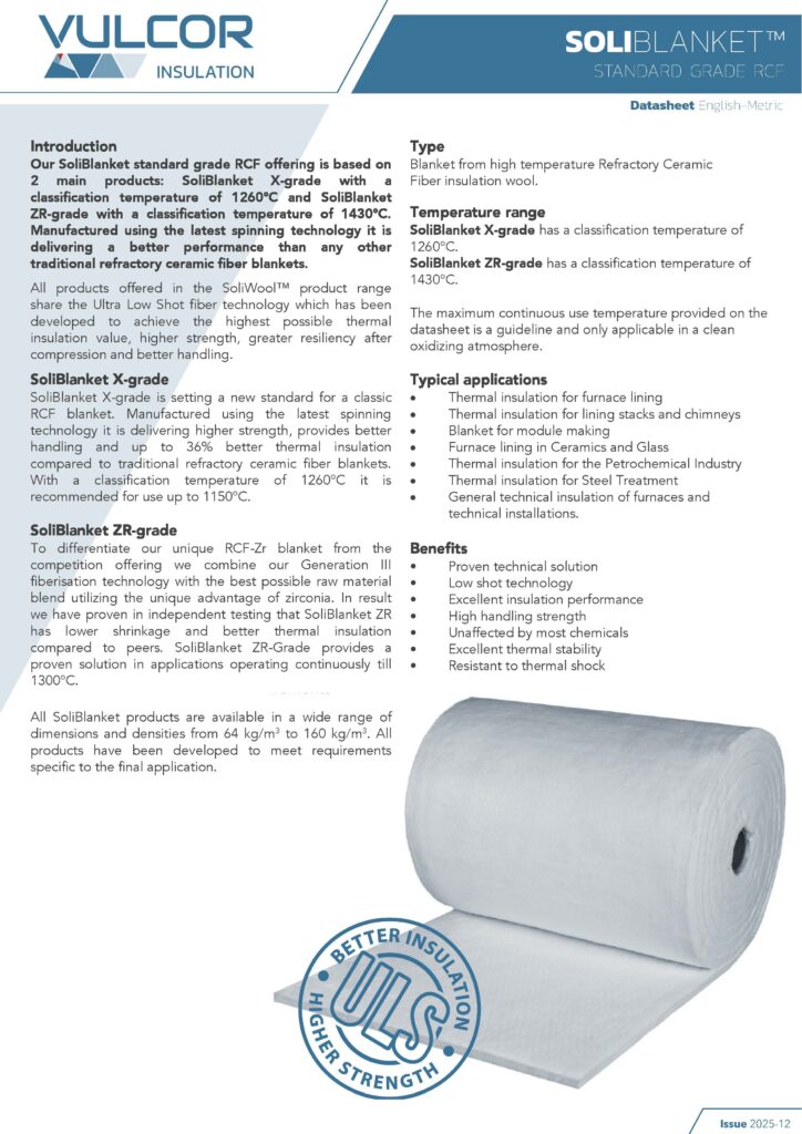 SoliPaper is part of an extensive product range supplied by Vulcor Insulation. Vulcor Insulation is supplying insulation solutions from cryogenic to high temperature applications. All products offered by Vulcor are manufactured in house or sourced from exclusive trusted third party partners.